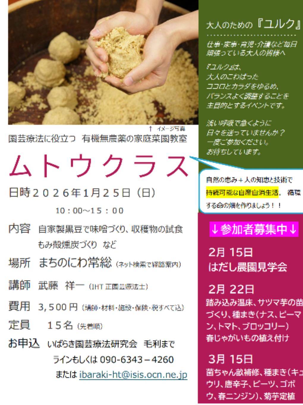 園芸療法に役立つ 有機無農薬の家庭菜園教室 ムトウクラス (開催日:2026.1.25.)