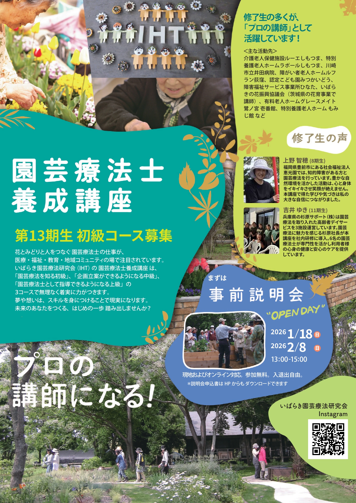 園芸療法士養成講座13期 事前説明会のお知らせ